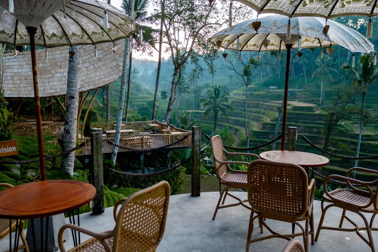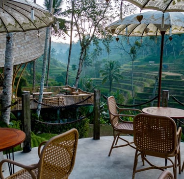 Time to head into the rainforest and the cultural heart of Bali on Monday. Ubud is filled with green rice terraces, ancient temples, and jungle landscapes. Tuesday starts with a private yoga session at the resort. We will explore the Sacred Monkey Forest. the temples, then overlook the rice paddies at TIS cafe. Safe travels back to the airport and onto your next destination on Wednesday (1.5 hours).